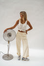 • Nos modèles portent le top Bronx blanc, le pull Gaella rose et la veste Helmi bleue en jeans