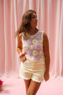 Top Nikos jaune et lilas en crochet
